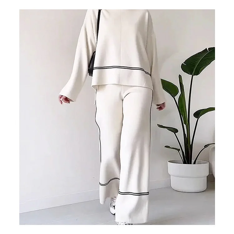 The women's matching leisure suit consists of two separate garments that can be worn together or paired with other garments in your wardrobe. The wide-leg design of the bottoms provides ample room for movement while adding a stylish aesthetic.