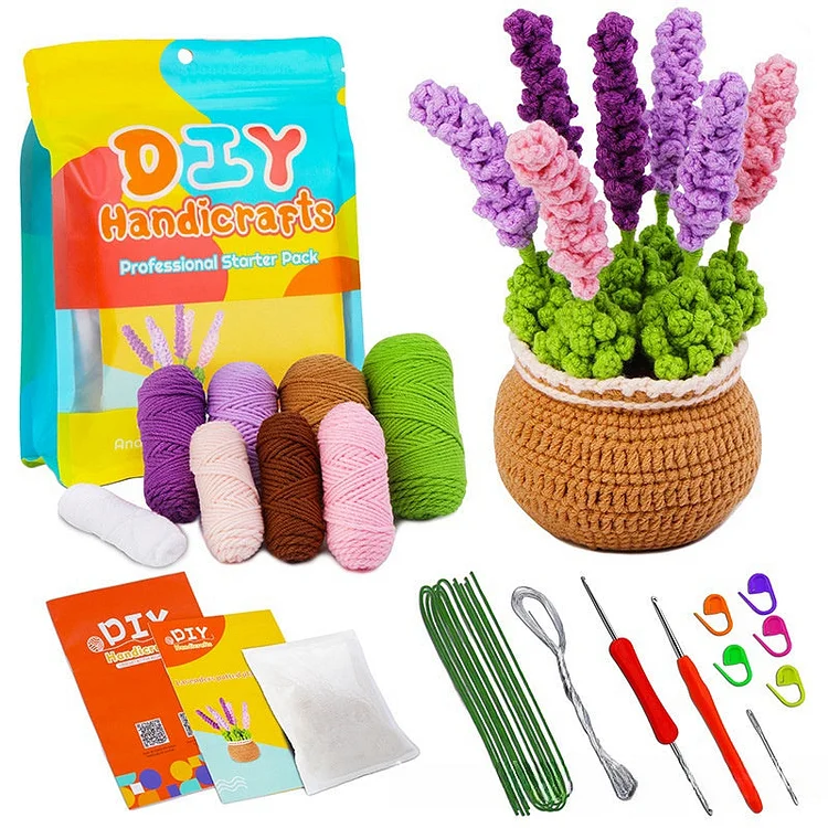 Plant potted handmade diy knitted ornaments material package (lavender)